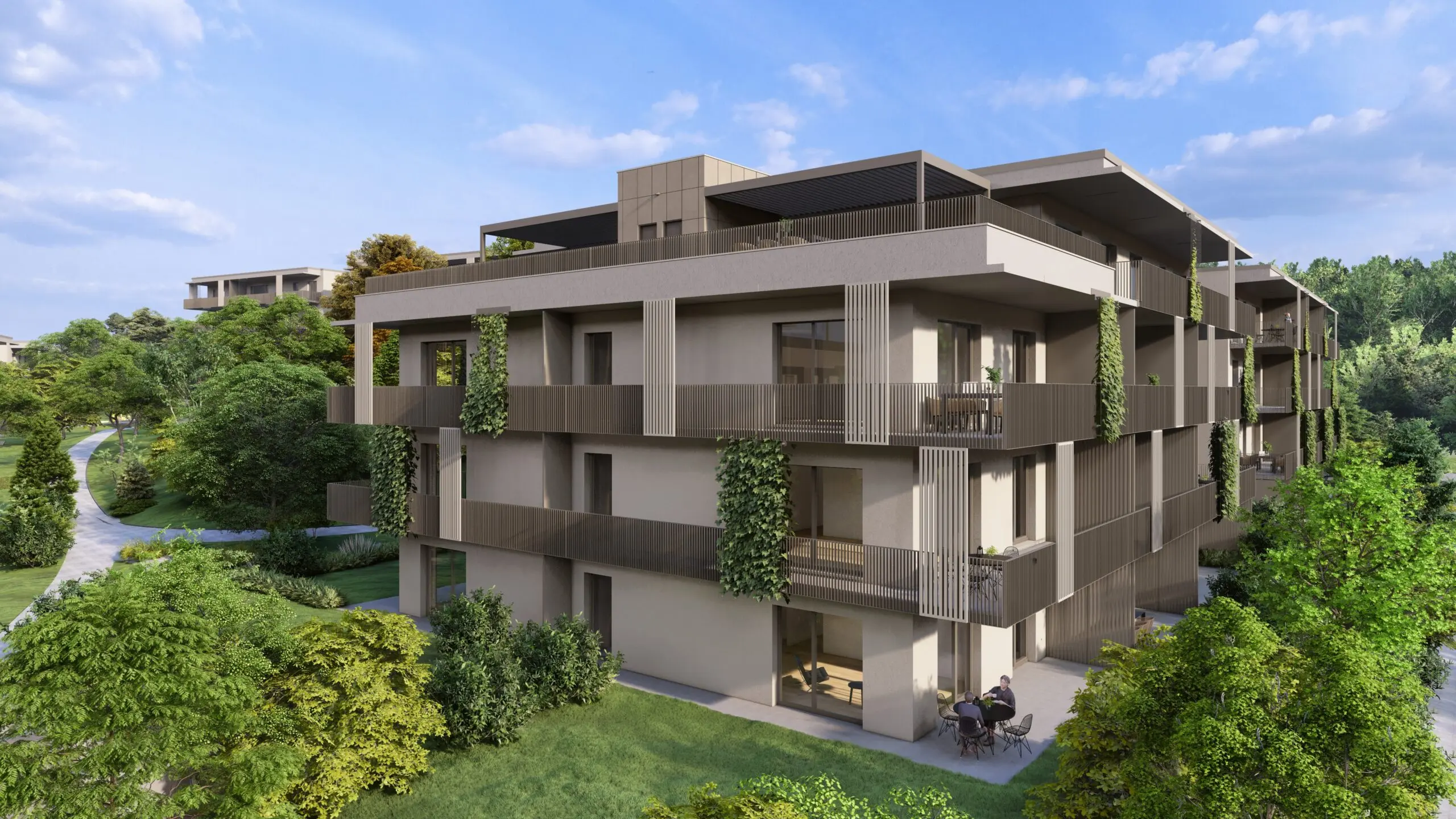 A telkek több mint felén parkosított játszótér és street workout pálya áll a lakók rendelkezésére, hogy minél természetközelibb legyen az élettér és a mikrokörnyezet.